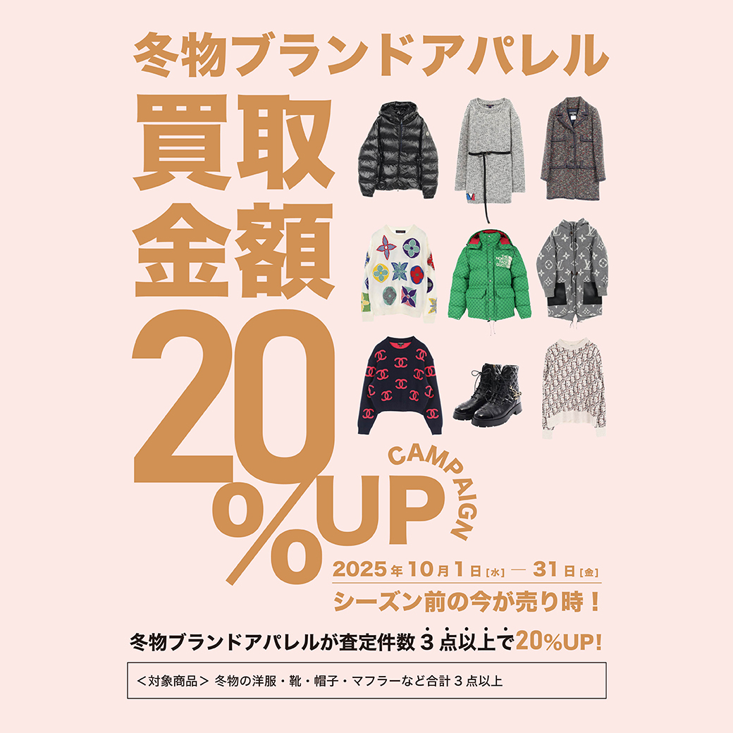 キャンペーン名 | 冬物ブランドアパレル買取金額20%UPキャンペーン |