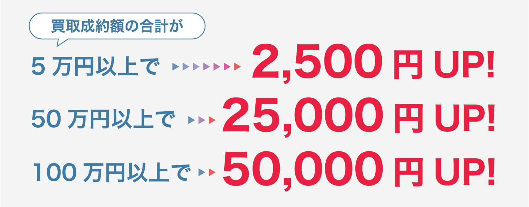 合計の成約額に応じ、買取金額が最大5万円アップ! |