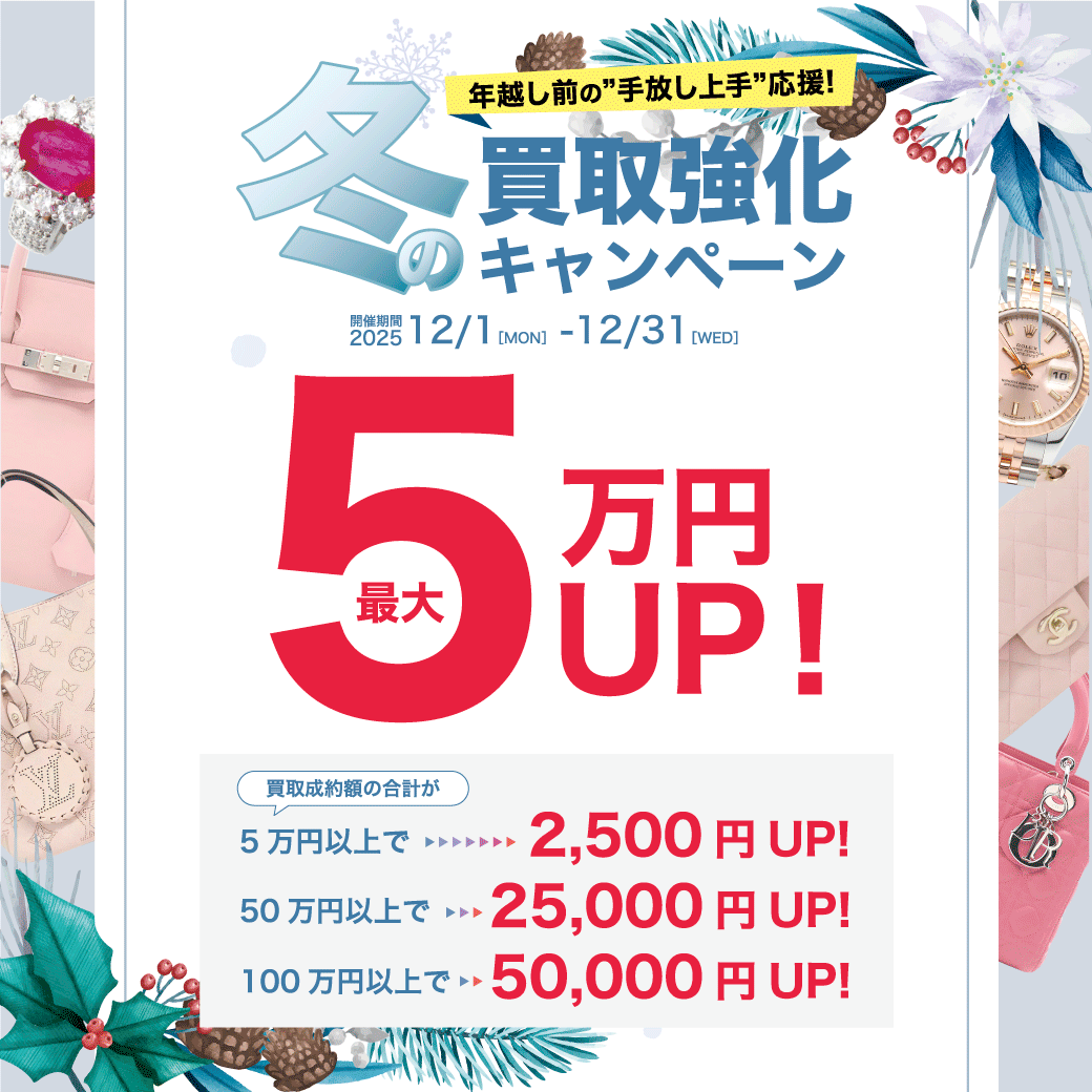 | キャンペーン名 | 冬の買取キャンペーン ~年越し前の”手放し上手”応援!~ |